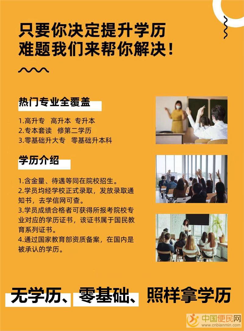 由于系列多、院校多、专业多、学习形式多、学习所用的费用不等。欢迎您的来电咨询中+国+便+民+网。总会有一套学历规划方案适合您。学校覆盖全国各地区,可根据学生情况,就近安排学习和学校,详情可致电或添加微/Q:991268958 需要的伙伴滴滴我。
